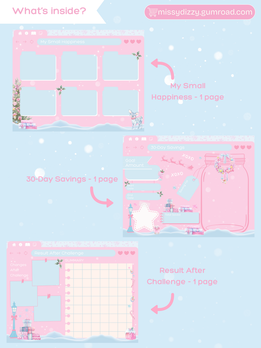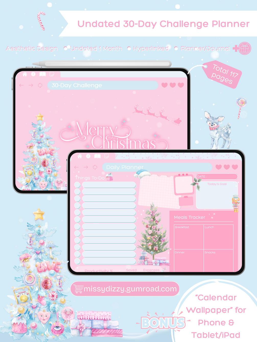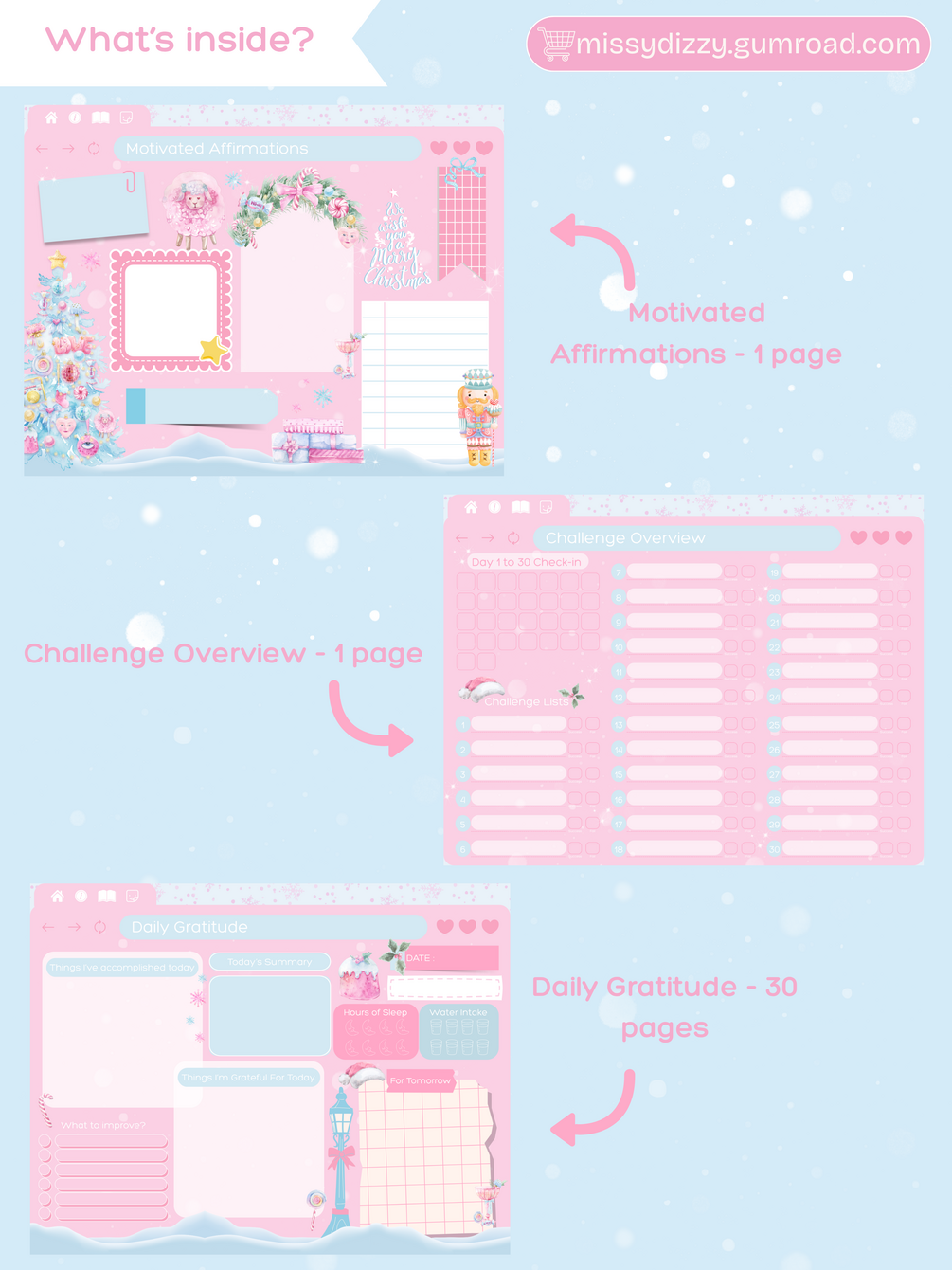 Christmas-Themed Undated 30-Day Challenge Planner (Pink & Blue Aesthetic)