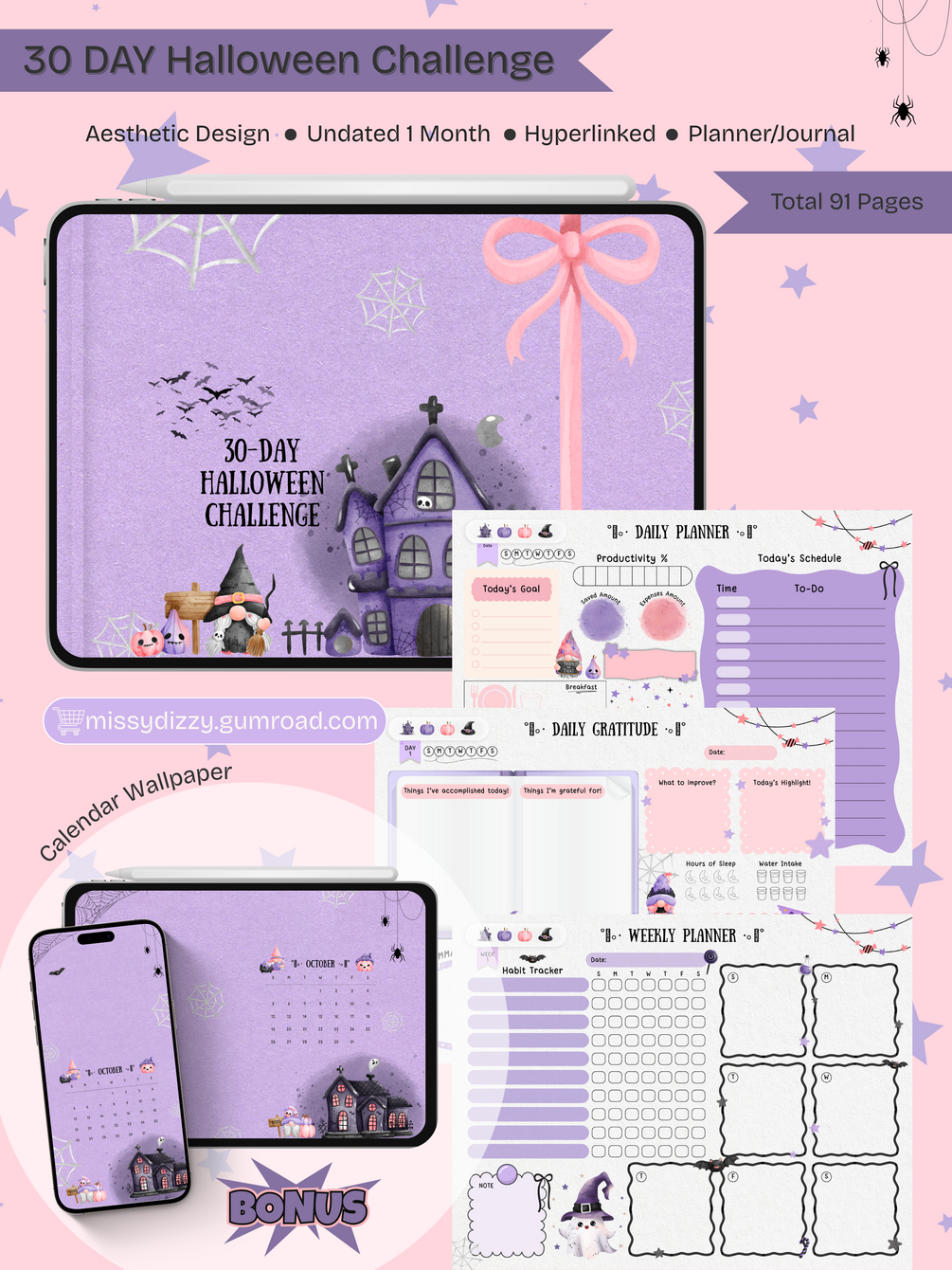 Undated Halloween 30-Day Challenge Planner + Bonus Wallpapers